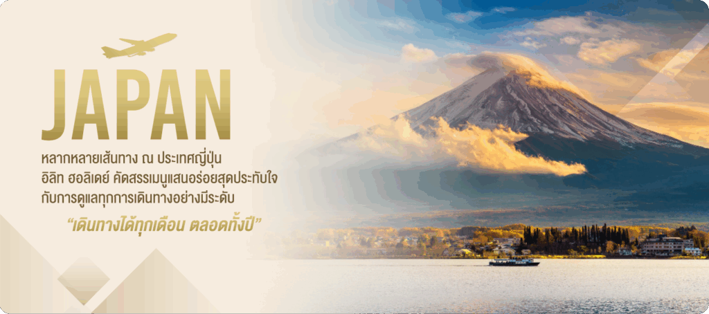 เที่ยวญี่ปุ่นทุกช่วงเทศกาล ไม่ว่าจะเป็นแบบทัวร์ส่วนตัวกลุ่มเล็ก หรือกรุ๊ปทัวร์กลุ่มใหญ่ ด้วยบริการทัวร์ญี่ปุ่น 5 ดาว ทัวร์ญี่ปุ่นปีใหม่ ทัวร์ญี่ปุ่นส่วนตัวและแบบกลุ่มระดับพรีเมี่ยม ในรูปแบบทัวร์ญี่ปุ่นราคาสุดคุ้มจากอิลิท ฮอลิเดย์ ดูแล…กันและกันตลอดทริป ให้คุณดื่มด่ำบรรยากาศธรรมชาติ รับประทานอาหารเลิศรส พักในโรงแรมสุดหรู เที่ยวสบายตลอดทริปญี่ปุ่น ทัวร์กับเรา ไม่มีผิดหวัง
