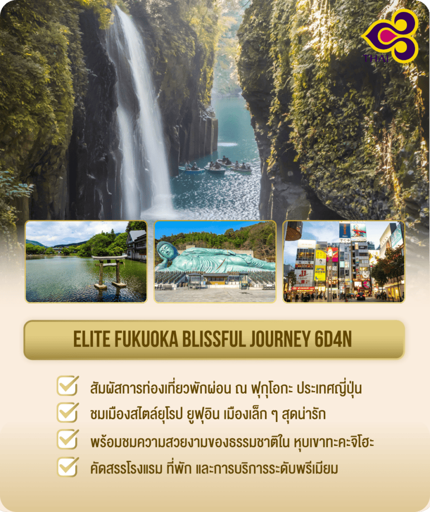 ทัวร์ญี่ปุ่น 2569 ทัวร์ฟุกุโอกะ – ยุฟุอิน – คุมาโมโตะ ELITE FUKUOKA BLISSFUL JOURNEY 6D4N