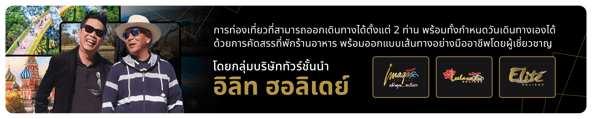 อิลิท ฮอลิเดย์ พร้อมพาท่านออกเดินทางท่องเที่ยวต่างประเทศและในประเทศ เราได้รังสรรค์เส้นทาง คัดสรรโรงแรม ร้านอาหารชั้นนำ และเลือกสรรยานพาหนะที่เหมาะสม ในมาตรฐานที่ดีที่สุด เพื่อทำให้ทุกวันหยุดที่มีค่าของท่านพิเศษยิ่งขึ้น